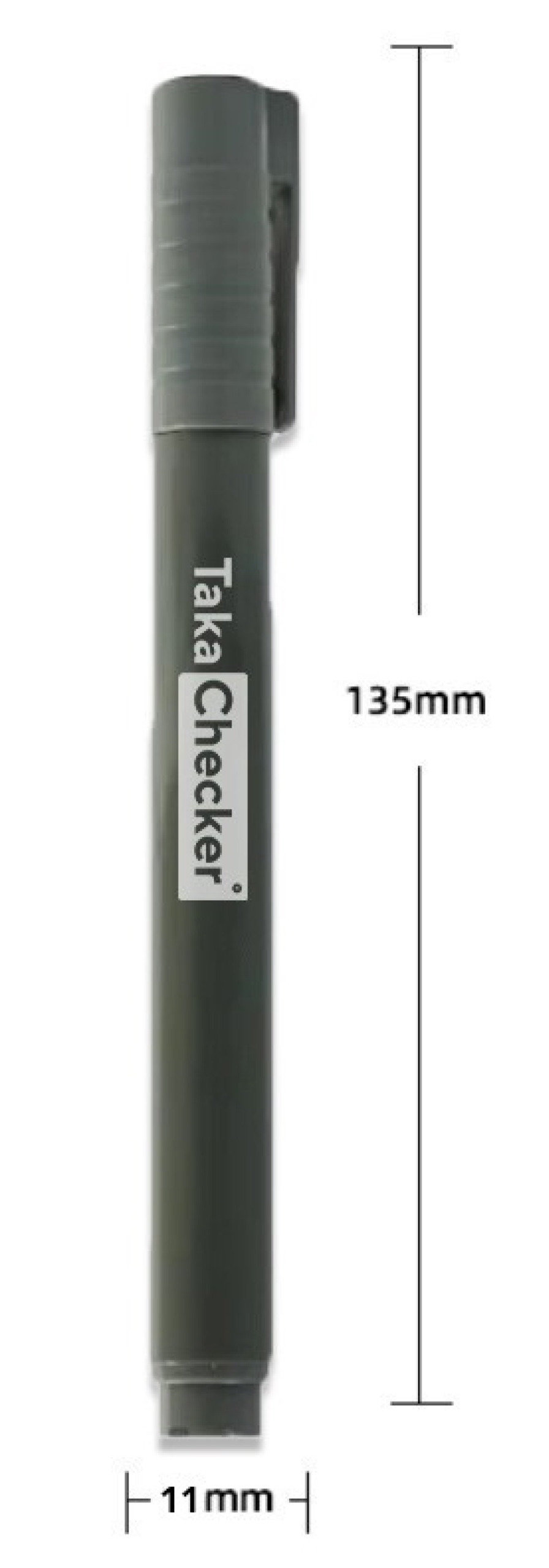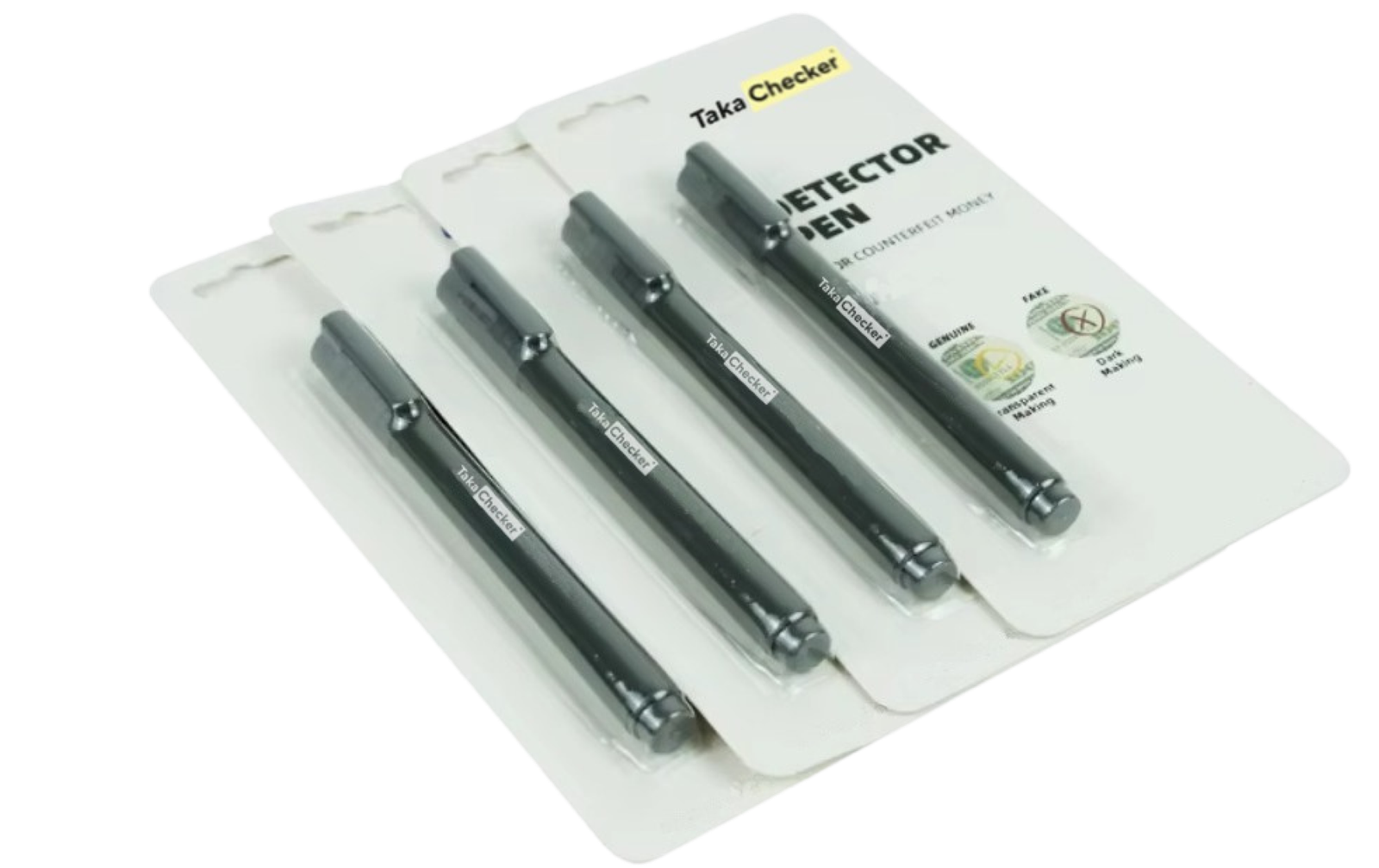 Use the pen with UV light function to easily detect UV light sensitive security threads on genuine Taka note.